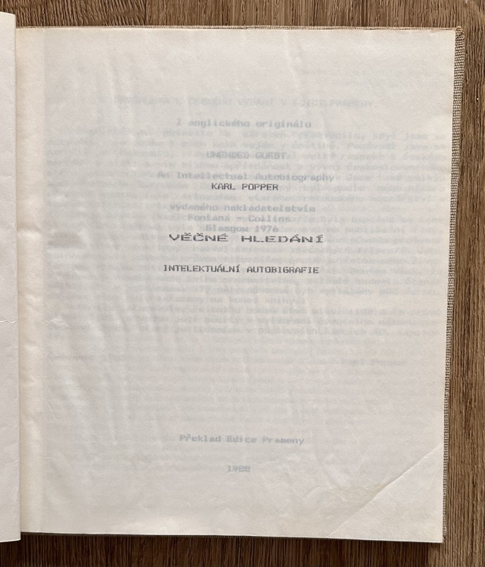 Věčné hledání intelektuální autobiografie /samizdat Brno/